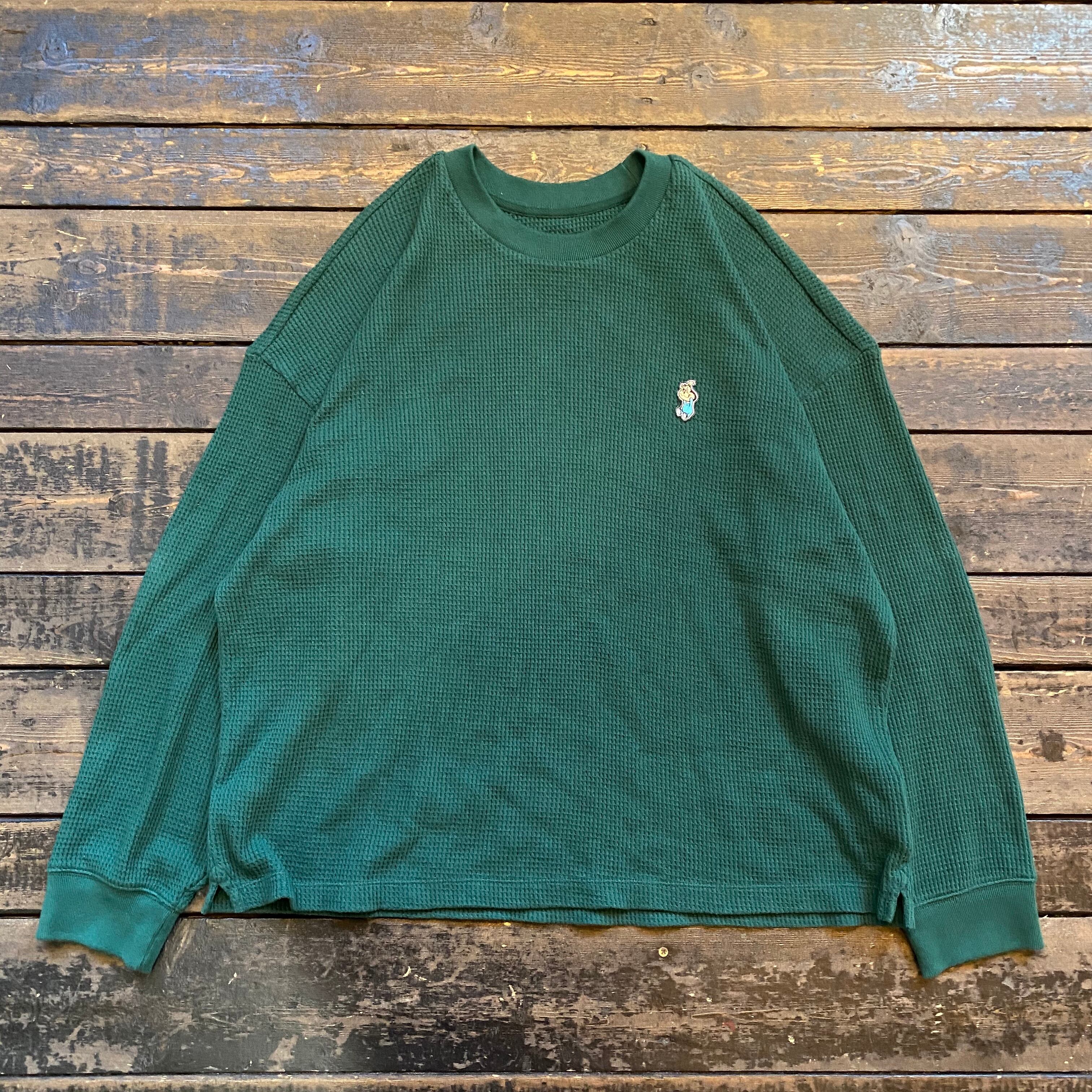 "ワンポイントワッペン・ロングサーマルワッフルシャツ"(フォレストグリーン)