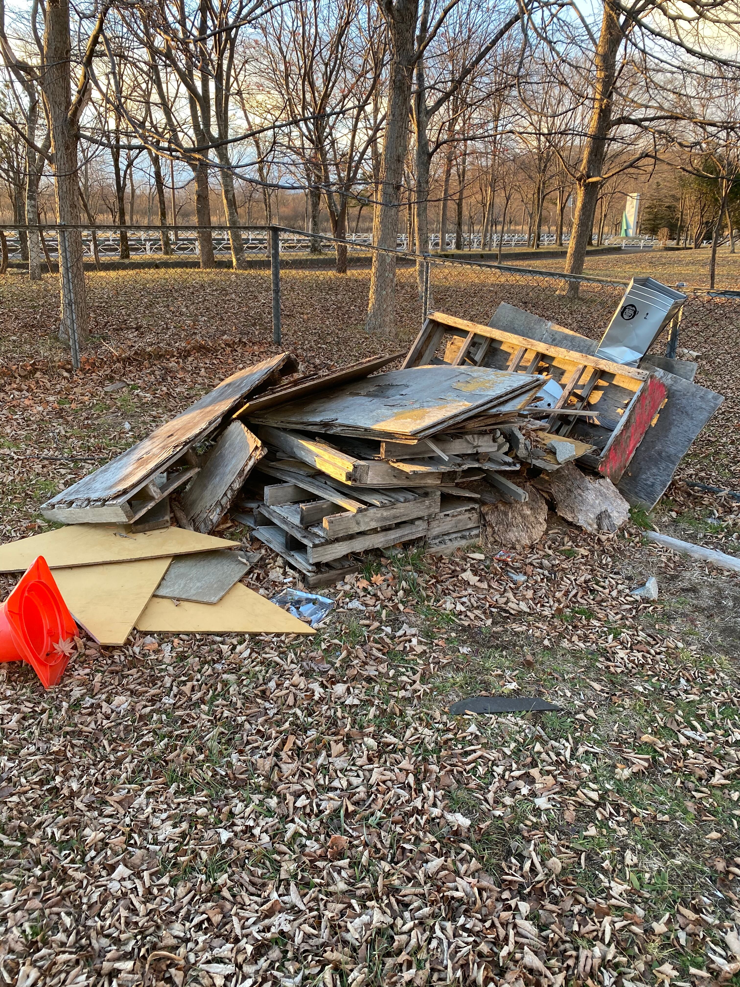 どこの誰かわからないスケーターが持ち込んで壊れてしまったセクションの処分と今現在皆んなで使っているセクションの補修をする為行動します!